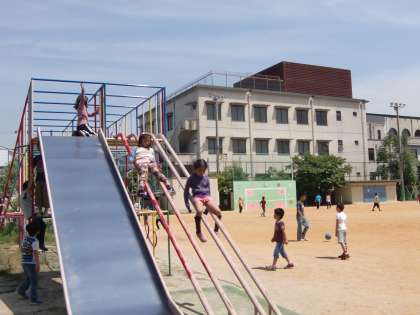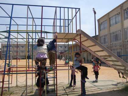 運動場でドッジボールをして遊ぶようになった2年生もいますが,低学年の子は遊具で遊ぶ子が多いのが特徴です。