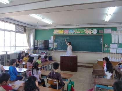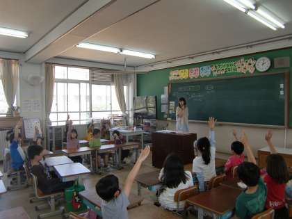 あいさつは人と人とのコミュニケーションの第一歩です。四錦が昨年度から重点的に取り組んでいるのが外国語活動・英語活動でコミュニケーションをとろうとする子を育てることです。つまりは『つながる子』です。