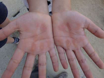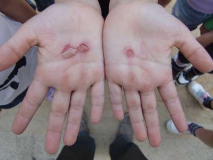 2年生が,「校長先生,これ見て〜」と言って差しだした手の写真を載せます。