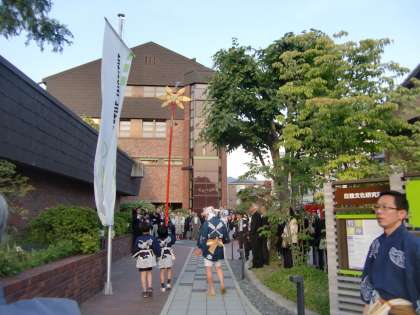 ドイツのケルン市と京都市が姉妹都市になって50年。今日,記念式典が川端通のゲーテ何とかというところでありました。式典に先立って行われたアトラクションは剣鉾です。大人の剣鉾は迫力満点です。会場となった庭が狭いので窮屈そうに差しておられました。