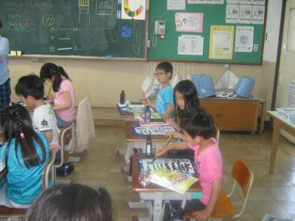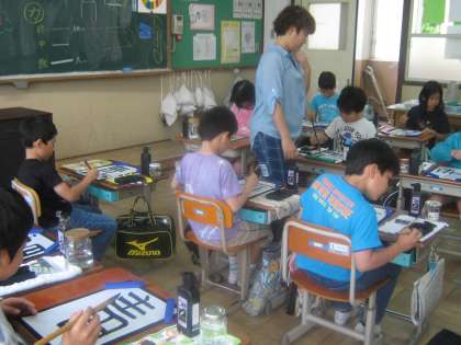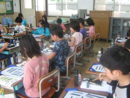 3年生から始まった書写の習字。実際に筆を持って書いたことが新鮮な様子でした。筆先をそろえて,一画一画真剣に書いていました。