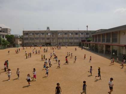 写真は運動場やビオトープにいた子どもたちが運動場の真ん中で体を小さくして,「命を守っている」ところです。しっかりできています。