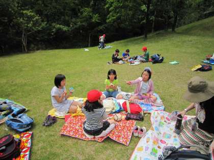 いっぱい歩いて少し疲れましたが、やっぱりお弁当があればうれしくなります。みんないい顔をして食べていました。芝生のきれいなところで、中にはゴロゴロ転げまわる子もいました。