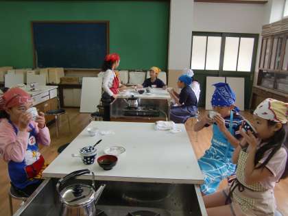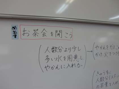 5年生の家庭科の実習です。初めての実習は「お茶を入れて飲む」という簡単なものですが,家で飲むのと学校で飲むのでは,きっと味わいが違ったはずです。