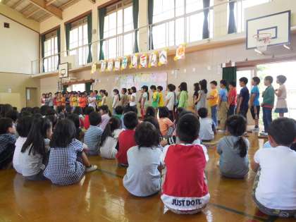 この1年生を迎える会をきっかけに,にこにこグループでの交流や休み時間などで,お兄さん・お姉さんとして優しく接する4年生になってほしいと思います。