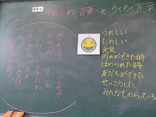 さわやか週間の取り組みで、「ふわふわ言葉とちくちく言葉」について学習しました。ふわふわ言葉は、いい気持ちになれる言葉で、ちくちく言葉はいやな気持になる言葉だということをみんなで話し合いました。