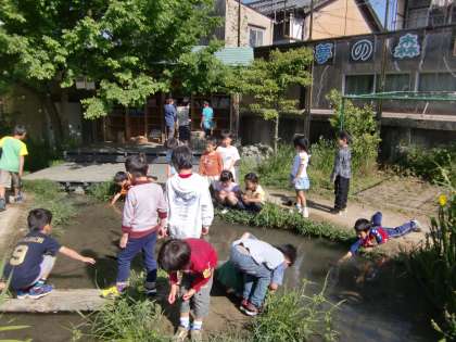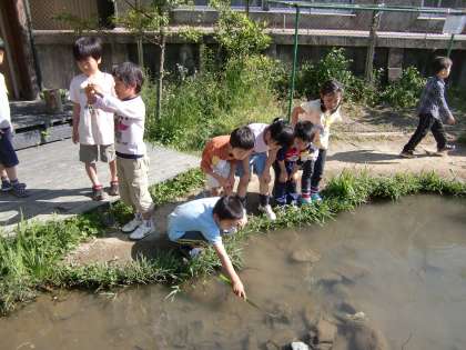 今日もいい天気です。朝から池の周りにはたくさんの子が集まっています。1年生が中心です。中々やります。