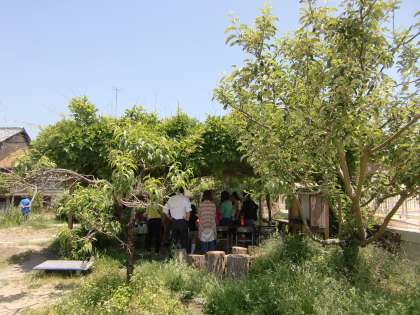 部活茶道の野点が例年通り藤棚の下で行われました。暑すぎず寒すぎず,最高の気候です。青葉を揺らして吹き抜ける初夏の風の中,子どもたちの心のこもったお茶をいただきました。ごちそうさま。
