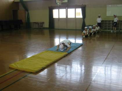 3年生は「マット運動」です。2年生までは「マット遊び」でしたが,しっかりと運動していきます。今日は「今までに習った技」を連続して行うことと,少しがんばればできる技に挑戦しました。