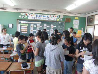 午後,6年1組の外国活動の授業を全教員で参観しました。