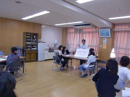 京都市総合教育センターから外国語活動の中村指導主事を迎えて研究協議会を開きました。素材は6時間目に全員で参観した6年2組の授業です。