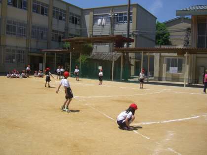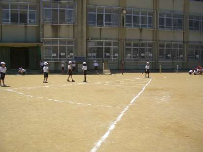 ソフトボール投げをしました。1年生の頃は,後ろにボールが飛んでいってしまうこともありました。あの頃と比べると,投げ方も準備の仕方も上手になりました。