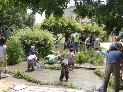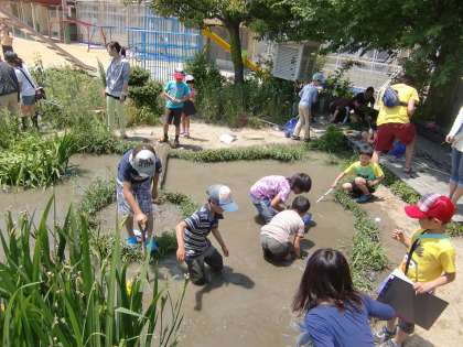 たまたま池に落ちた子が,そのまま「エイヤー!」と池に入ったものですから,その後,「自ら進んで」池に落ちる子が続出。今日だけ,スペシャルなザリガニとりを楽しんでいました。