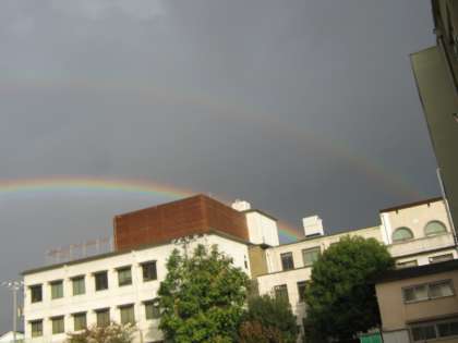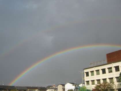 14:53には,はっきりとした虹が見えました。そのうちに,二重構造の虹が大空いっぱいに架かりました。