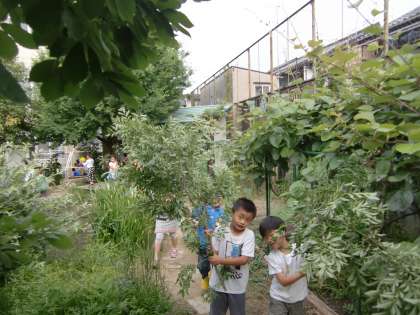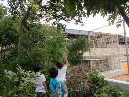 ビオトープの月澤文庫の所に大きな木があって枝がグイッと伸びていました。あまりに長くのびていたので,昨日少しカットしました。