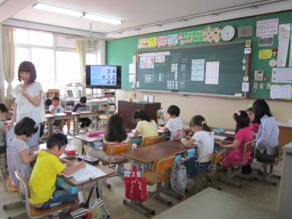 1時間目の算数、2時間目の体育、3時間目の英語活動です。