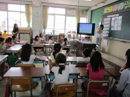 体育は、音楽に合わせて体ほぐしの運動をしていました。英語活動では、1年生の時に学習したことのおさらいです。1年の時に学習したチャンツを聞いて、言っていました。覚えていたかな〜?