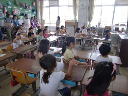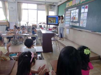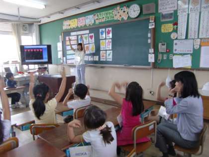 四錦では1年生から英語活動を始めています。これは他の学校にはあまり例のない本校の特色です。