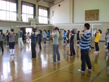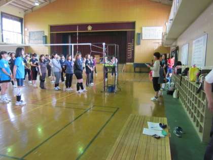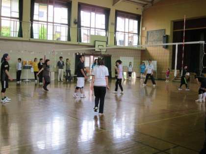 休日参観の後は、午後1時30分からPTAの親睦バレーボール大会がありました。休日参観が終わるのは12時20分です。それから、急いで、体育館で準備にとりかかってくださいました。教員も各学年に入り、参加します。