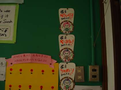 6−1!3つ目の大ぺろりんをもらいました。これまで、パーフェクトで給食を食べています。教室に大ぺろりんをはったとき、さりげなく「給食全部食べるの当たり前になってるよな」「特にがんばってるわけじゃないし」と話す子どもたち・・・そのさりげない会話がかっこいいな〜と聞いていました。