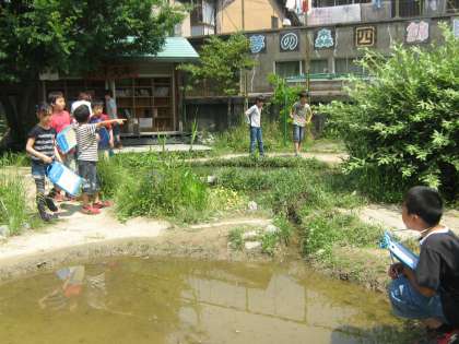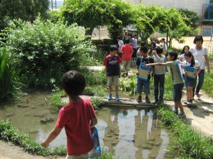 校庭やビオトープでどんな生き物が見つけられるかを話し合って,ビオトープに実際に観察にいきました。どんな生き物がいるかを見通しを立てていったので,短時間でも集中して,観察ができました。