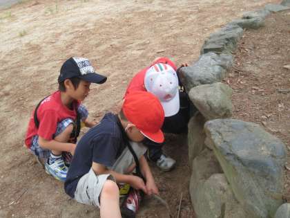 「先生,ありが食べ物を運んでいます」「ありの巣穴を見つけました」とうれしそうに教えてくれました。