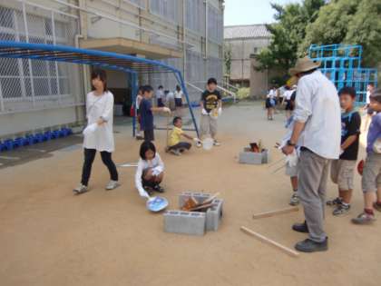 来週,みさきの家に行く4年生が火おこしの練習です。野外炊事がプログラムに組み込まれているので,事前にぜひやらせておきたい練習です。