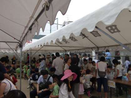 吉田児童館まつりがありました。曇ってはいましたが,カンカン照りでなくてよかったなあと思います。だって,すごい熱気でしたもの。