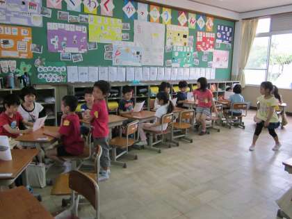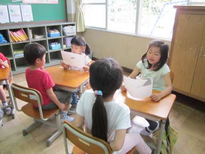 前半と後半に分かれて,クイズを出し合いました。初めての活動でしたが,しっかり話すことができ,楽しくできました。