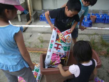 生活科で育てている野菜が随分大きくなってきました。そこで今日は,植え替えの準備をしました。土がたっぷり入ったプランターを運ぶのは,一苦労。「わっしょい。わっしょい。」とみんなで力を合わせて準備をしました。ふかふかのプランターが準備できたので,来週ぐらいから大きくなってきた苗を順に植えかえていく予定です。