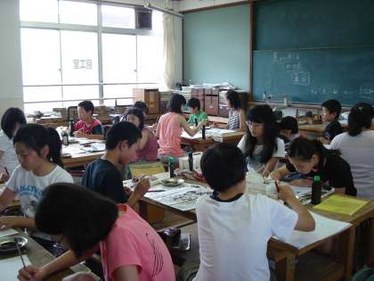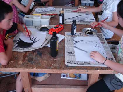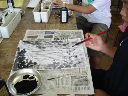 今日は1組が作品づくりをしました。昔話をイメージしながら、墨の世界を楽しみました。