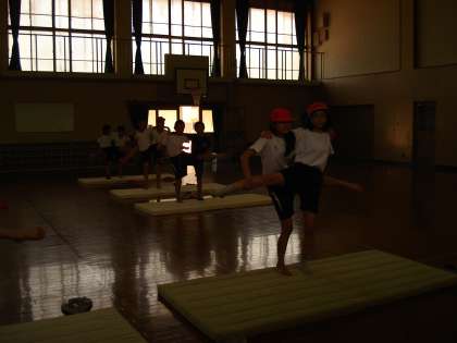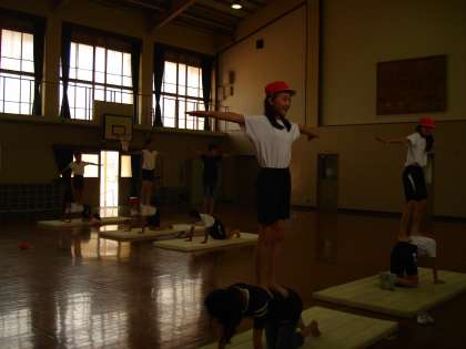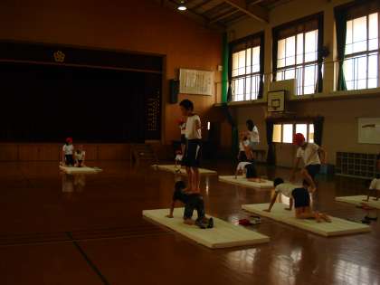 まだ先の運動会に向けて、組み体操の練習を始めています。