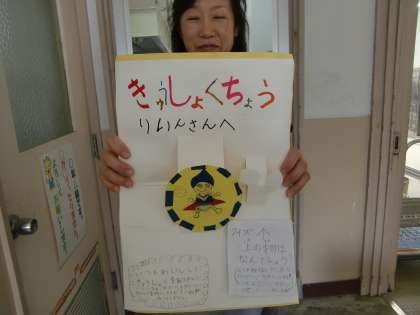 いつものように給食室に検食に行くと,給食調理員が,「校長先生,3年生の子がこんないいものを持って来てくれました。」とうれしそうに見せてくれたのが,『とび出せ!びっくりカード!』。