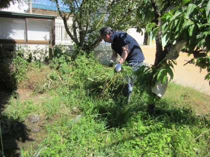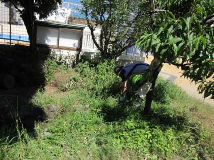でも、校長先生は、昨日の続きの草ひきをしておられました。