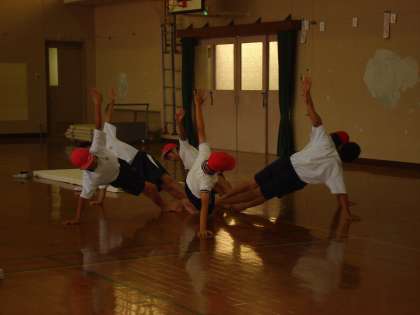 今までの一人練習が生かされていて、初めて取り組んだのにきれいに決まりました。きれいに決まったことは、見ているものにはわかるけれど、実際にやっている子どもたちはわかりにくかったのではないかなあ?こういうとき、写真っていいですよね。