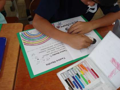 今日は、プリントに色をぬって自分のプリントを見ながら、やさしい気持ちでやさしい声で歌えました。
