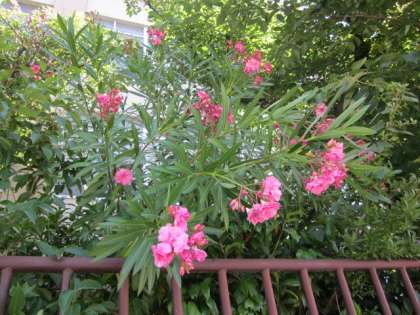 東一条通りに沿ってある学校の植え込みの樹木の花が咲いていました。