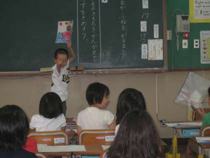 国語「おさるがふねをかきました」の学習で,音読発表をしました。