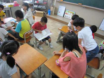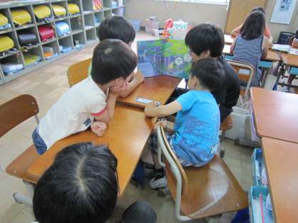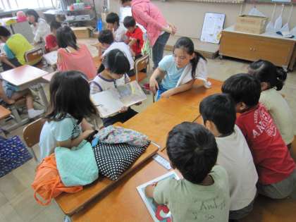 今日は、3年生と5年生がグループの子どもたちに読み聞かせをしてくれました。自分で用意した絵本をゆっくりとお話していました。相手を意識して読むのは難しいと思いますが、どの子もがんばっていました。