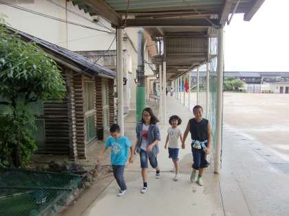 6年生が北校舎まで1年生を迎えに行きます。優しくて親切なお兄さん・お姉さんです。手をつないで歩いている人もいます。