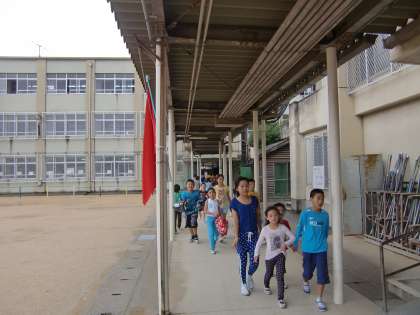 にこにこタイムが終わったら,1年生を教室まで送っていきます。もちろん6年生が…です。