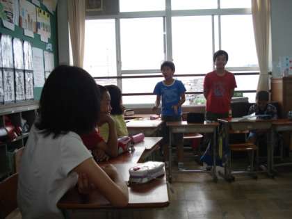 以前、学級通信に書いていた「クイズキング係」からの提案で、休み時間に討論会が開かれました。今回の話題は、「夜にするなら楽しい話?怖い話?」国語の学習で学んだことを生かし、7月にせまってきた修学旅行の夜のためにの話し合いです。