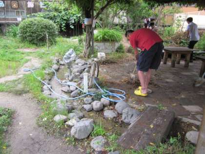 橋の取替えの次は、藤棚の下のそうじをしていただきました。