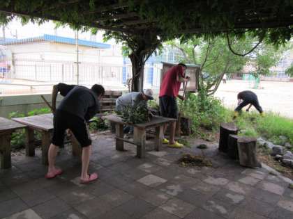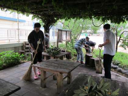 おやじの会 〜藤棚の下のそうじ〜