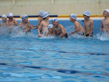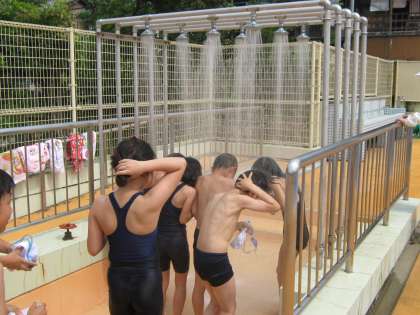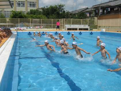 今日から3年生は水泳学習がスタートです。ルールを確認し,バディを組みました。安全面でバディをしっかり習慣づけていきたいです。まず,体を水に慣らすために水を自分で体にかけたり,友だちとかけ合ったりしました。そして,走って体に水の抵抗を覚えさせました。