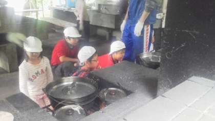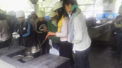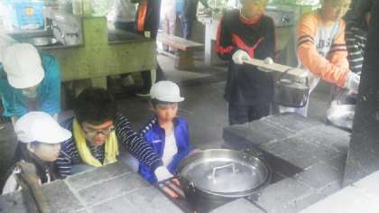花背の山に立ち昇る煙は四錦の子らがカレー作りに挑む煙。ガスではなく、もちろんIHでもない薪と格闘中です。完成させないと今日の夕食はありません。