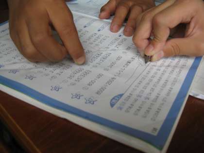 写真のために書いて見せてくれているところです。あーあー,算数の教科書に・・・。