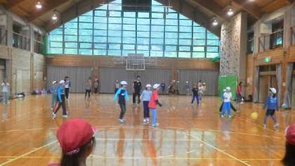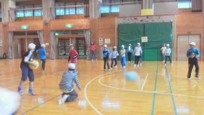登山中止の5年生はドッチボールではしゃいでいます。外に行けない鬱憤晴らしですが、汗いっぱいかいて発散しています。