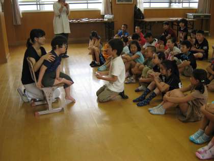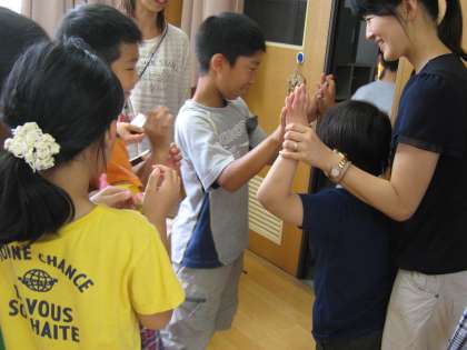 終わりの言葉のあと,ひとりひとりとタッチをしてお別れをしました。