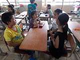 班のリーダーを中心に、その日の掃除で頑張ったことやもう少し頑張った方がいいことなどを話し合い、学級で交流しています。